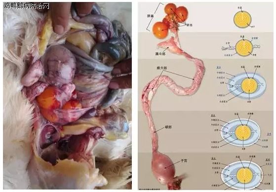 蛋禽的品种很多,常见的有鸡、鸭、鹅、鹧鸪、鹌鹑等,在蛋禽的产蛋过程当中,除了卵巢提供一个卵子之外,剩下的都是在输卵管内完成,所以蛋重和蛋品质都是由输卵管所决定的,轻度的输卵管炎可以造成蛋壳上有斑点,蛋壳质量变差,蛋品质下降,输卵管炎的延伸就是卵黄性腹膜炎,再延伸就是卵巢炎;加上高产蛋禽输卵管部位的特殊性,几乎每天都有硬壳蛋经过,一旦发生了输卵管炎就像有了慢性病一样,很难治愈,输卵炎的鸡群更容易脱肛;卵黄性腹膜炎和脱肛是蛋鸡死淘中的关键部分,所以说输卵管炎是造成蛋禽死淘升高最直接的原因,因此保护输卵管对降低死淘率,改善蛋品质意义重大。现在我们就以蛋鸡为例,讲述一下如何保护输卵管。