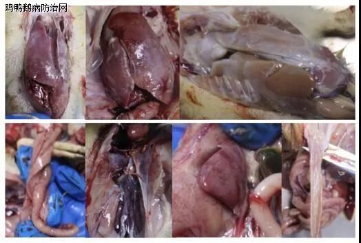 包心包肝,肺淤血,肾脏、脾脏、胰腺出血,个别鸭直肠轻微出血。如图所示: