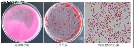 无菌采取送检鸭肝脏分别涂布麦康凯平板和血平板,37℃培养过夜,在麦康凯平板上长有大量大肠杆菌,挑取血平板菌落革兰氏染色镜检,分离到鸭疫里默氏杆菌。如下图: