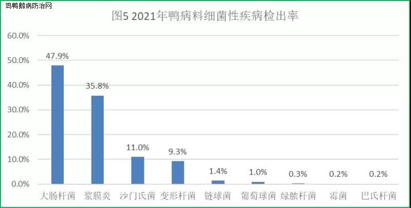 4.1 流行动态:2021年发病有所下降,主要是肉鸭发病有所下降,蛋鸭和种鸭都是零星发病。感染日龄拓宽,以前主要成年鸭,现在50-60日龄就开始发病。呈现明显的区域性。