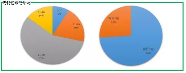 1.1流行动态:感染日龄主要集中在20-30日龄,占鸭肝病例数57.1%;流行血清型主要是3型,占74%,其次是血清1型,占26%。肉鸭后期感染引起鸭肝症状不典型,肝脏出血不明显,心包积液明显。