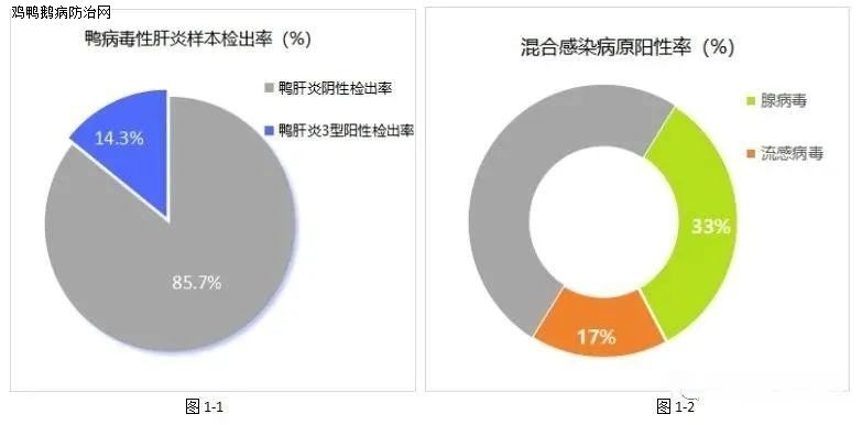 样本阳性检出率为14.3%,检出阳性样本均为鸭病毒性肝炎3型,同时多伴发流感病毒、腺病毒感染。