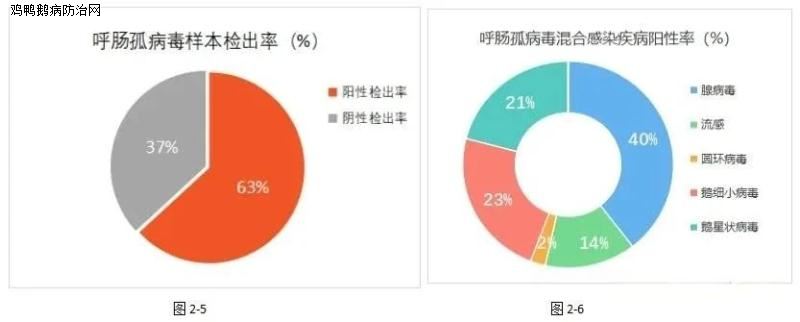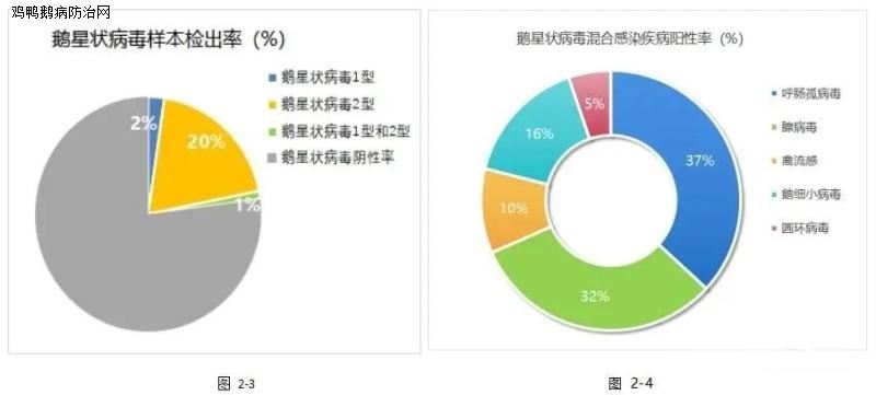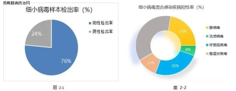 样本阳性检出率为43%;临床多与呼肠孤病毒、鹅星状病毒、腺病毒等混合感染。