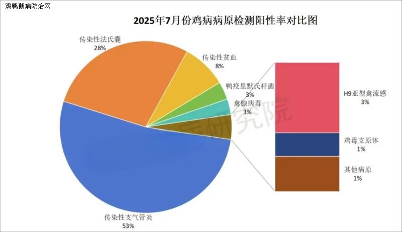 7月份传染性支气管炎病毒(IBV)检出率为53%,与6月份相比上升6个百分点。