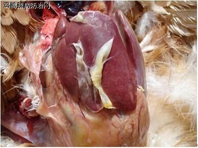 很多养殖户反应,不管是今年还是以前,自己没有育雏舍的养殖户大部分都是进青年鸡,但是进青年鸡之后都容易出现问题,刚开始的几天,大群有个别打蔫的鸡,拉绿色和西红柿样粪便,或有拉稀、过料症状(如图1),有零星死亡,如果不及时控制,进舍一周后会有体型大的鸡群伤亡,解剖症状为严重的心包炎、肝周炎 (如图2),养殖户一般会选择在青年鸡进舍后一周左右免疫新城疫Ι系和新—流二联油苗,免疫后会出现更大的发病。往往是育雏的青年鸡越好,出现这种病例的机会就越大。