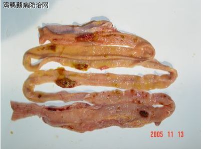 整个肠道深度溃疡,但主要在回肠和盲肠。