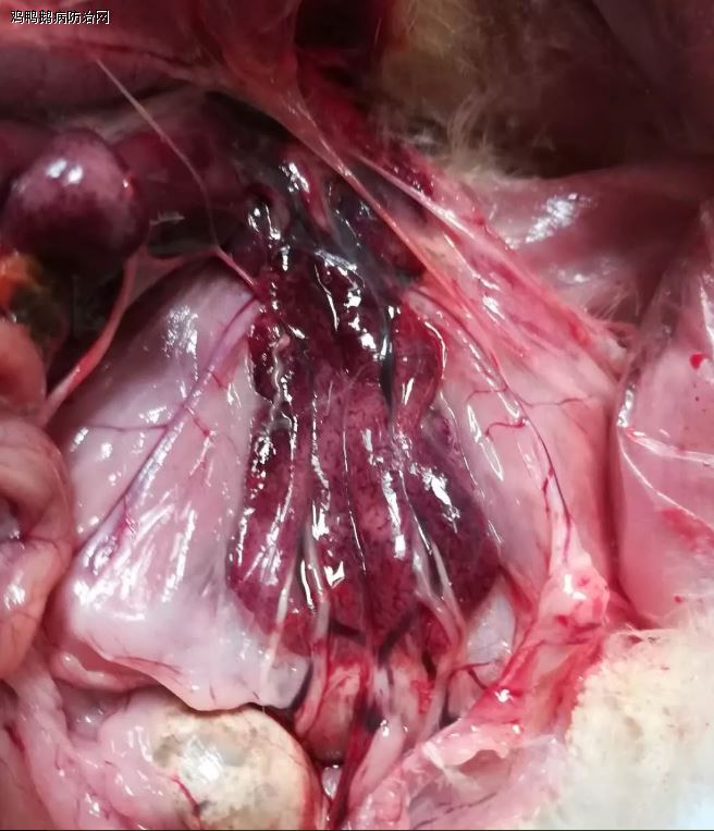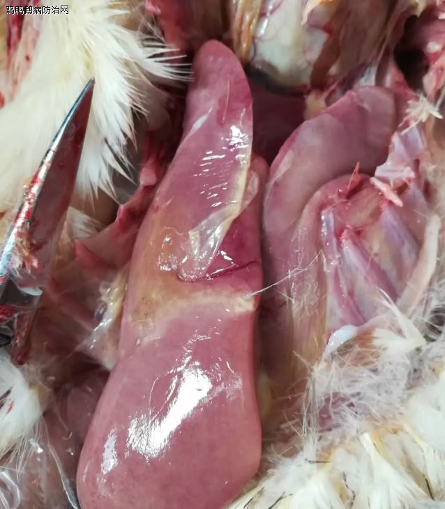 另外一个鸭场26日龄每天死亡几百只,解剖症状和上面基本一样,多种病毒混合感染导致大批死亡。