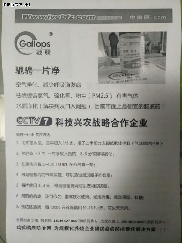 1、改善水质、净化养殖环境:用驰骋一片净,每周三定期消毒一次,即可达到净化养殖环境目的(祛除棚舍氨气、空气净化首选--驰骋一片净(减少呼吸道疾病传播))。经过数百家养殖企业使用证明:选用驰骋一片净,消毒效果好!对多种病毒、细菌、真菌有效率达93%-98.5%。畜禽养殖防控肠道病好用、有效、实惠、方便、便宜等特点的产品--驰骋一片净(10000只鸡1天只需25-30元的药费即可)老养殖朋友都在用,您还在等什么............