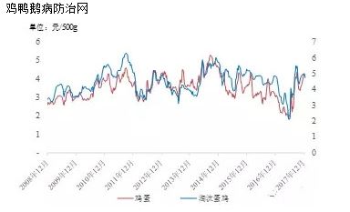 2018年玉米和豆粕价格震荡中心均将上移,加之氨基酸、维生素等添加剂的上涨预期,每斤鸡蛋饲料成本将上升至2.9~3元/500g,完全成本(计算育雏均摊成本)上升至3.5~3.6元/500g。