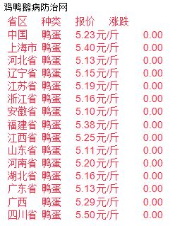温馨提示:以实单实谈交易为准,同一地区可能存在一些差异,上述所报价格仅供参考!鸭菜蛋:全国平均价5.2元/斤,最高价:5.7元/斤,最低价:5.1元/斤,价格高位稳定。