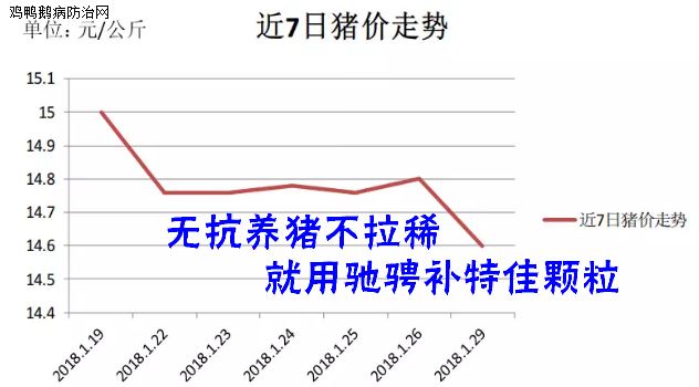 据鸡鸭鹅病防治网监测,2018年1月30日全国外三元生猪均价为14.98元/kg,较昨天下跌0.02元/kg;仔猪均价为30.15元/kg,较昨天持平;今日白条肉均价21.03元/kg,较昨天减少0.02元/kg。今日猪料比价为5.59:1,较昨天减少0.01;猪粮比8.25:1,较昨天增加0.03。