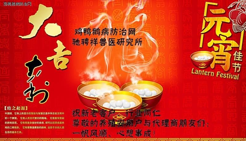 正月十五月圆圆,万家灯火不夜天,家家户户乐翻天;元宵甜甜又圆圆,快乐喜庆鞭炮欢,吉祥好运连成串;花好景好人圆圆,国盛民昌家美满,和和美美爱情圆;元宵节,鸡鸭鹅病防治网联合驰骋祥商贸公司祝新老客户、行业同仁们、尊敬的养殖安用户们一年平安全家顺,一生健康全家安,一路发财全家福!