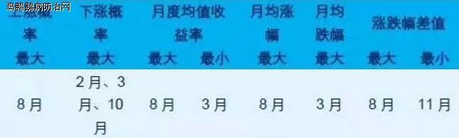 对月度涨跌幅计算平均数,涨幅最大的是8月,为3.5%,其次是9月,为2.22%;跌幅最大的是3月,为-2.15%,其次是10月,为-2.04%。