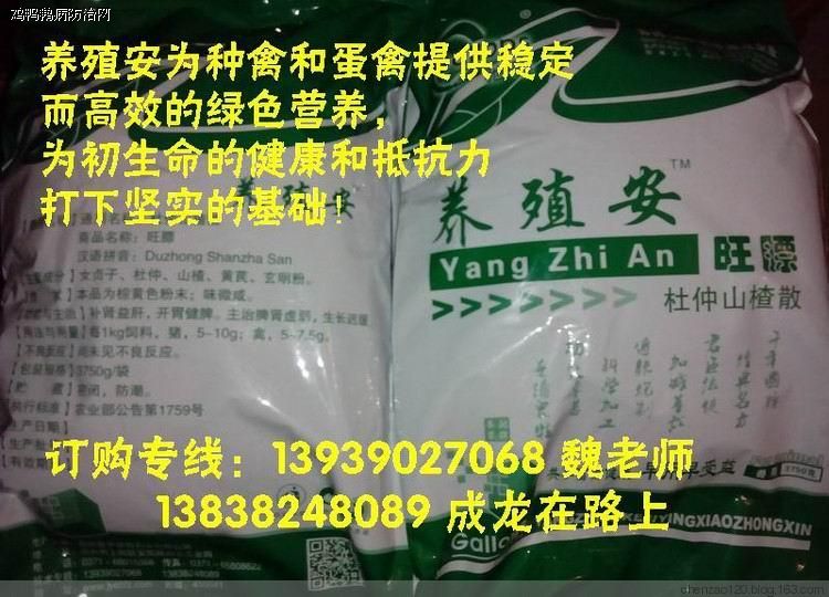 中药汉方+微生物保健---养殖安I(体液酸碱平衡,无抗养殖首选)-高效复方杜仲山楂散+嗜酸乳杆菌+枯草芽孢杆菌+酵母菌(含酵母细胞壁)+益生元 (寡糖),国家一类新型功能性添加剂。家禽根源性保健, 解除肝胆负担,彻底摆脱肠道疾病的困扰!优化蛋禽产蛋性能,增加蛋重。让鸡鸭鹅变的不再难养!养殖安是畜禽肠道保护专家!养殖安是种禽肠道粘膜吸附剂!养殖安 是家禽消化系统疾病全面解决专家!更多使用案例可直接登www.中兽医.com官网进行查阅,养殖安880---绿色无抗健康养殖的倡导者;欢迎致电魏老 师13939027068,或拨打我们的产品顾问电话13838248089 (成龙),绿色养殖,安心赚钱,用心服务,成就你我!