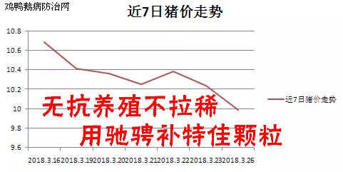据鸡鸭鹅病防治网监测,2018年3月27日全国外三元生猪均价为10.34元/kg,较昨天下跌0.02元/kg;仔猪均价为28.54元/kg,较昨天下跌0.02元/kg;今日白条肉均价14.2元/kg,较昨天下跌0.1元/kg。今日猪料比价为3.86:1,较昨天减少0.01;猪粮比5.41:1,较昨天减少0.05。