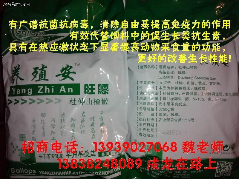 中药汉方+微生物保健---养殖安I(体液酸碱平衡,无抗养殖首选)-高效复方杜仲山楂散+嗜酸乳杆菌+枯草芽孢杆菌+酵母菌(含酵母细胞壁)+益生元 (寡糖),国家一类新型功能性添加剂。家禽根源性保健, 解除肝胆负担,彻底摆脱肠道疾病的困扰!优化蛋禽产蛋性能,增加蛋重。让鸡鸭鹅变的不再难养!养殖安是畜禽肠道保护专家!养殖安是种禽肠道粘膜吸附剂!养殖安 是家禽消化系统疾病全面解决专家!更多使用案例可直接登www.中兽医.com官网进行查阅,养殖安880---绿色无抗健康养殖的倡导者;欢迎致电魏老 师13939027068,或拨打我们的产品顾问电话13838248089 (成龙),绿色养殖,安心赚钱,用心服务,成就你我!