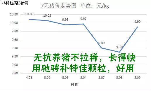 鸡鸭鹅病防治网分享:2018年5月10日全国外三元生猪均价为10.05元/kg,较昨日持平;仔猪均价为27.64元/kg,较昨日减少0.1元/kg;今日白条肉均价13.7元/kg,较昨日持平。今日猪料比价为3.63:1,较昨日持平;猪粮比5.56:1,较昨日持平。