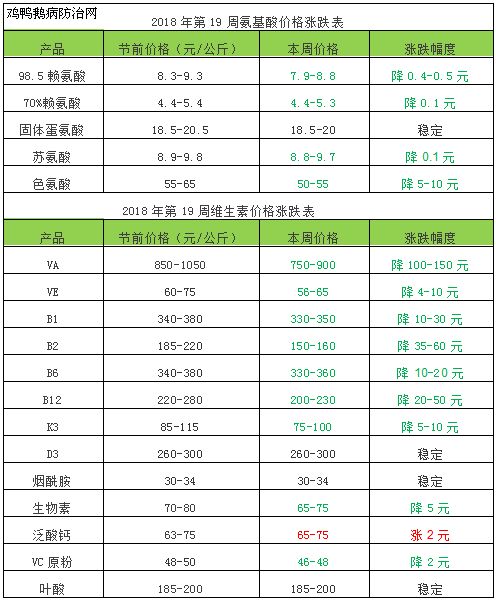 2018年第19周维生素市场动态