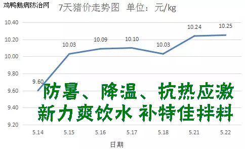 据鸡鸭鹅病防治网监测,2018年5月23日全国外三元生猪均价为10.25元/kg,较昨日上涨0.08元/kg;仔猪均价为27.6元/kg,较昨日上涨0.01元/kg;今日白条肉均价13.73元/kg,较昨日上涨0.12元/kg。今日猪料比价为3.73:1,较昨日增加0.03;猪粮比5.7:1,较昨日增加0.04。