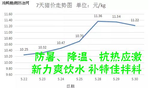 据鸡鸭鹅病防治网监测,2018年5月31日全国外三元生猪均价为11.22元/kg,较昨日持平;仔猪均价为24.7元/kg,较昨日减少0.05元/kg;今日白条肉均价15.32元/kg,较昨日减少0.06元/kg。今日猪料比价为4.09:1,较昨日持平;猪粮比6.25:1,较昨日持平。