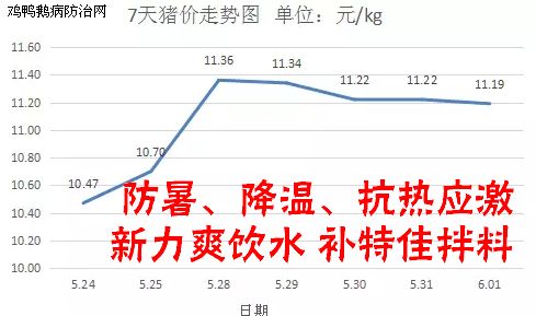 今日全国生猪均价稳中弱调。东北猪价涨跌互现,华北地区多趋稳,华东猪价弱调,整体全国猪价涨跌震荡调整。5月31日中央环境保护督察“回头看”已全面启动,环保高压,猪价行情低迷,中小养殖户已萌生退意;中央气象局预报6月初北方也将迎来35℃以上高温天气,生猪饲养管理难度加大,因此近期猪价波动,市场猪源释放也将增加,猪价或有回落风险,然局地市场标猪猪源偏紧,猪价仍有走高可能,短期来看猪价仍将震荡调整。