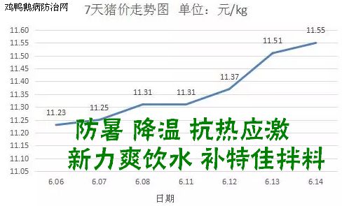 据鸡鸭鹅病防治网监测,2018年6月15日全国外三元生猪均价为11.60元/kg,较昨日上涨0.06元/公斤;仔猪均价为24.14元/kg,较昨日上涨0.01元/公斤;今日白条肉均价15.26元/kg,较昨日下降0.01元/kg。今日猪料比价为4.30:1,较昨日上涨0.03;猪粮比6.53:1,较昨日增加0.04。