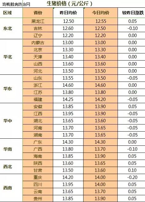 据鸡鸭鹅病防治网监测,2018年8月25日全国外三元生猪均价为13.61元/kg,较昨日上涨0.02元/kg;仔猪均价为24.1元/kg,较昨日持平;今日白条肉均价18.63元/kg,较昨日下跌0.08元/kg。今日猪料比价为5.01:1,较昨日增加0.01。