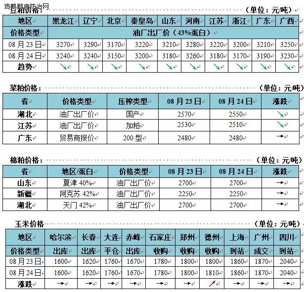 今日国内玉米价格震荡调整。台风“苏力”过境,局地迎大暴雨,预防玉米倒伏内涝工作。本周临储玉米共投放395.71万吨,成交量288.39万吨,成交率36.24%(上周30.00%)。8月24日,临储玉米投放397.45万吨,成交量78.85万吨,成交率19.84%(上周21.51%),成交均价1439元/吨(上周1443元/吨)。目前市场仍炒作新作减产,多看涨新粮开秤价格,提振临储玉米参拍积极性。华北企业收购延续震荡,随着拍卖成交量价齐升,企业到货量增加,今日部分企业玉米收购价格有所松动,关注企业到货情况。