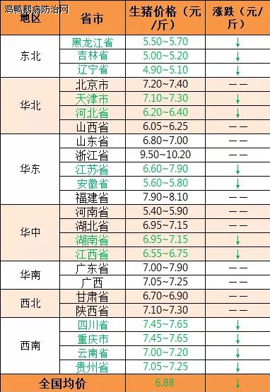 【猪价走势分析】: 今日猪价呈持续下滑态势。其中,辽宁省猪价破5,最低价仅4.90元/斤。除华南及西北地区暂稳外,其余地区稳中下跌。当前屠企备货不积极,市场消费不佳,短期或小幅波动。
