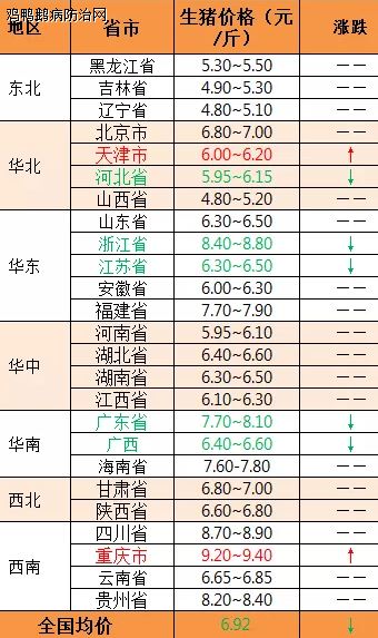 据鸡鸭鹅病防治网监测,2018年11月17日全国外三元生猪均价为13.37元/kg,较昨日下跌0.04元/kg;仔猪均价为22.43元/kg,较昨日持平;今日白条肉均价17.95元/kg,较昨日下跌0.01元/kg。今日猪料比价为4.92:1,较昨日减少0.01。