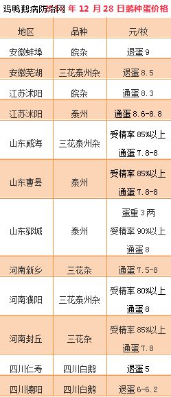 中兽医网分享:12月28日华南部分地区水禽、鸽价格如下: