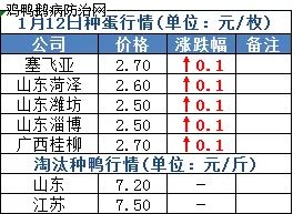 鸭苗市场价格行情:明日上游端鸭苗、种蛋行情量价齐升、反转上行。上周末以来由于屠宰端规模冷藏企业阶段性停放、交投下滑,南北方鸭苗价格相继大幅回落、一泻千里,价格跌破2元关口。近期虽雨雪不断、降水降温,但在冷藏合同投放量的持续恢复下,苗价低位反弹、逐步提升,明天北方区品牌苗厂开票价格上调0.1元/羽,南方两广及四川地区报价上涨0.3元/羽。全国监测区域鸭苗成交均价2.56元/羽,较去年1月同期上涨1.17元/羽,涨幅84.2%,环比12月下跌3.17元/羽。