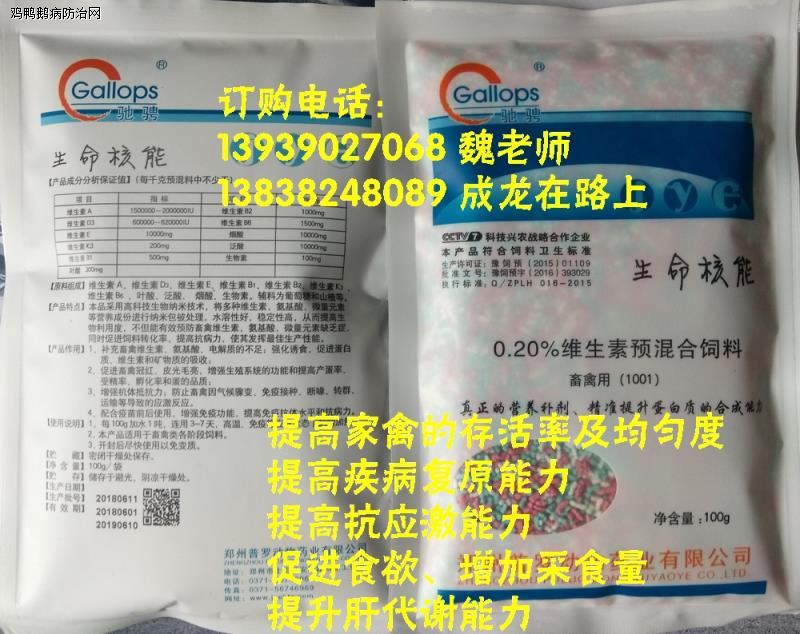 提高种蛋品质,提高受精率:种公鸡鸭鹅繁殖期,每隔7-10天,饮水投服用“生命核能”,每包兑水2000公斤。