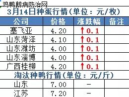 今日提醒:这两天鸭蛋价格基本稳定,部分地区价格上升1-2毛/斤;最近鸭子疫情高发,大家多注意观察,要做到早发现,早治疗,不要延误病情! 鸡鸭鹅病防治网 成龙在路上提醒大家 13838248089. 魏老师在线指导 13939027068.