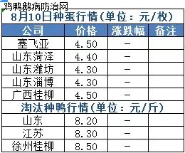2019年8月10日鹅种蛋价格(元/枚)停报