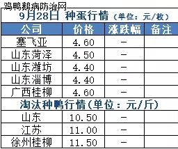 2019年9月28日鹅种蛋价格(元/枚)停报
