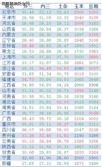 【鸡鸭鹅病防治网今日猪评】 2019年11月30日全国外三元生猪均价为31.61元/公斤,较昨日31.8元/公斤下跌0.19元/公斤;仔猪均价为78.02元/公斤,较昨日78.02/公斤下跌0元/公斤;白条肉均价40.62元/公斤,较昨日40.84元/公斤下跌0.22/kg。今日猪料比价为11.71,较昨日11.78减少0.07。