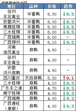 鸭苗市场价格行情:明日上游端鸭苗、种蛋价格全线回暖、苗蛋齐升,各区域主流孵化厂家开票报价普涨0.1元/羽。全国监测区域鸭苗成交均价1.85元/羽,较去年3月同期下跌4.48元/羽,跌幅70.8%,环比2月上涨0.80元/羽。