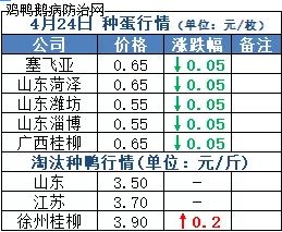 2019年4月24日鹅种蛋价格(元/枚)价格上涨