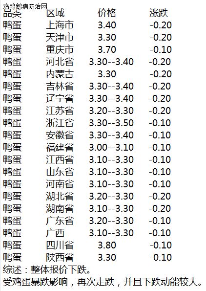 温馨提示:这几天鸭蛋基本稳定,区域不平衡比较突出。以实单实谈商榷交易为准,同一地区可能存在一些差异,上述所报价格仅供参考!
