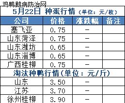 2019年5月22日鹅种蛋价格(元/枚)价格上涨