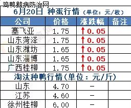2019年6月20日鹅种蛋价格(元/枚)价格上涨