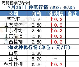 2019年7月26日鹅种蛋价格(元/枚)价格上涨