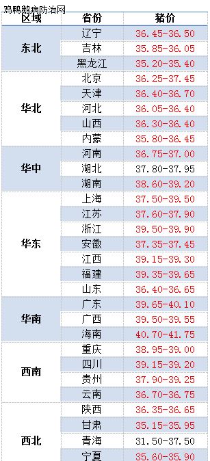 今日部分省份屠宰厂报价涨幅(元/公斤)情况:辽宁0.2、吉林0.4、黑龙江0.2-0.4、天津0.2、河北、陕西0.4、山东0.5、湖南0.2-0.4、江西0.1、江苏0.3-1.2、福建0.6-1、四川0.1-0.4、广东0.4、云南0.5、贵州1、新疆0.2。