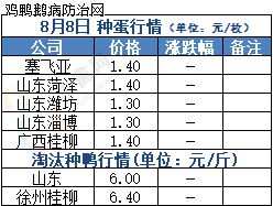 2020年8月8日鹅种蛋价格(元/枚)价格上涨