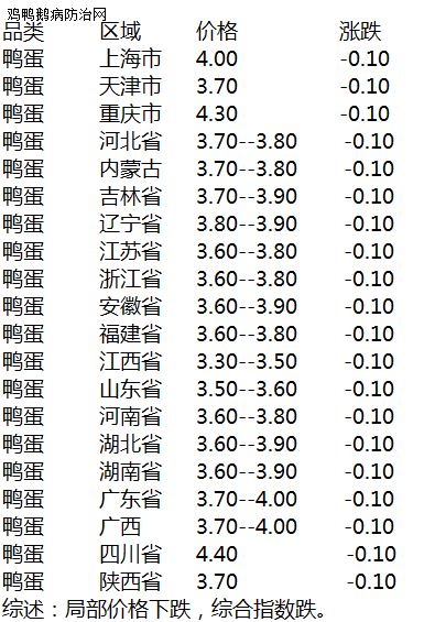温馨提示:这几天鸭蛋持续走低,区域基本平衡。以实单实谈商榷交易为准,同一地区可能存在一些差异,上述所报价格仅供参考!