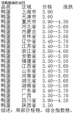 温馨提示:这几天鸭蛋稳定,区域基本平衡。以实单实谈商榷交易为准,同一地区可能存在一些差异,上述所报价格仅供参考!