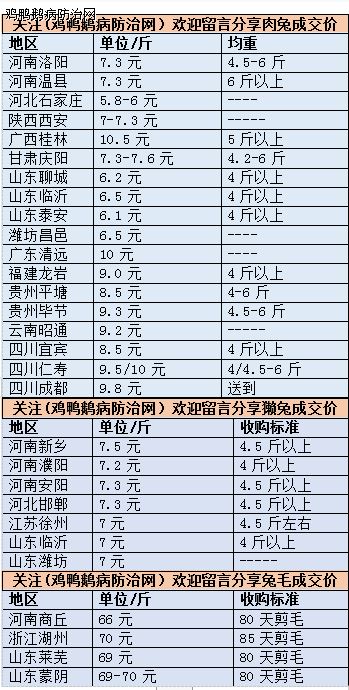各地天气逐渐凉爽,昼夜温差开始拉大,希望大家多关注幼兔断奶腹泻与呼吸道疾病防控情况(防治腹泻与呼吸道问题,用驰骋2.0甘草+养殖安拌料,长期使用效果明显),同时目前繁殖水平较炎热的夏季开始逐步回升,商品兔出栏方面不建议大家屯兔等价,在目前的饲料成本仍然偏高情况下,不管从饲料转化方面或者市场风险方面,在达到4斤多再靠上,无疑不是很划算。以上均为个人建议。