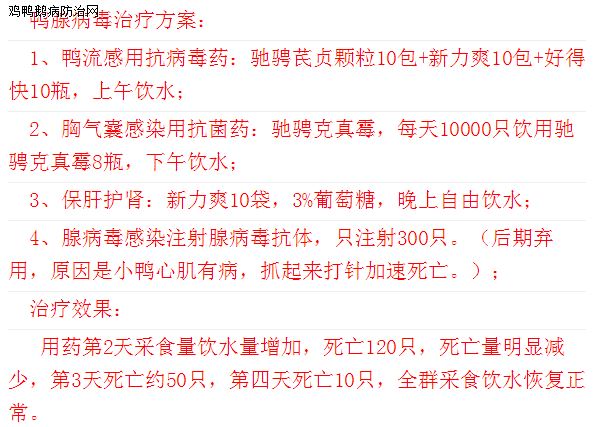 温馨提示:初秋时节、早晚温差大、防寒保暖很重要,同时不忘通风,请做好疫病预防管理工作,重视黄病毒、禽流感的防控,冬春季是鸭鹅产蛋下降、脾脏坏死、黄病毒、副粘病毒、浆膜炎等烈性传染病病的高发期,不可不防,近期产蛋下降、脾脏坏死、霉菌毒素流行泛滥。注意种鸭鹅产蛋下降、禽流感、黄病毒等水禽常见病的防控方案:养殖安+驰骋芪贞颗粒+新力爽+驰骋EAD乳液,混合饮水或拌料,每 月1-2次即可解决!防控禽流感、黄病毒效果就是不一样!水禽疫病实战专家魏老师提醒各位养殖朋友,防控黄病毒不可麻痹大意,要认真对待。 ‘