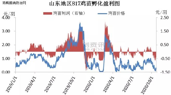 在鸡苗供应增加,毛鸡价格偏低,养殖户补栏积极性不足的情况下,鸡苗价格才再次跌至0.10-0.30元/羽,孵化企业再度进入亏损状态。